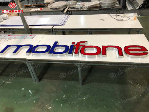 + Bộ chữ Mobifone được Đinh Phan tiến hành gia công và thực hiện với số ngày khá ngắn. Để phù hợp cho vị trí lắp đặt ngoài trời của các cửa hàng, Đinh Phan đã chọn lựa 2 chất liệu chính là mica và inox để gia công bộ chữ